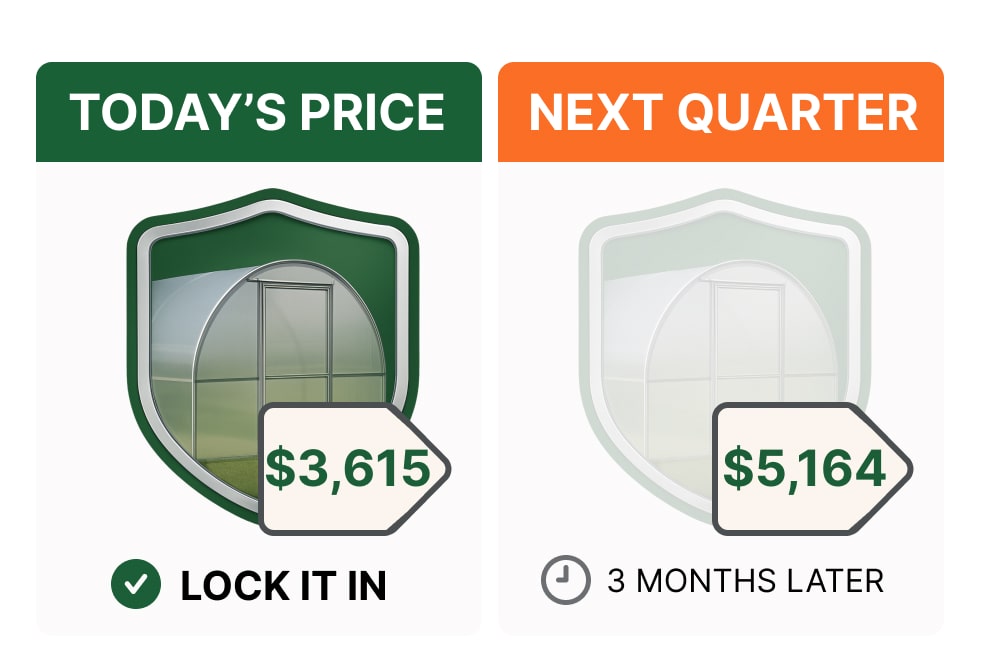 We pass those savings directly to you. You get the same high-quality greenhouse at a significantly lower price simply because you bought early.