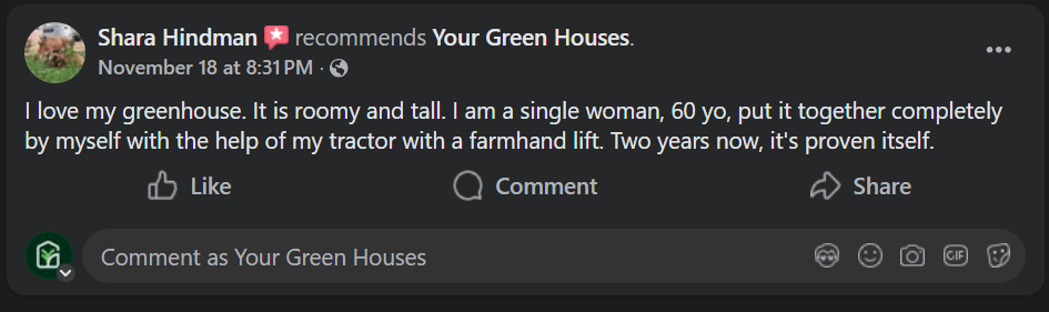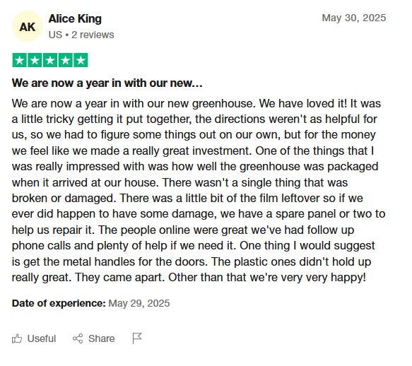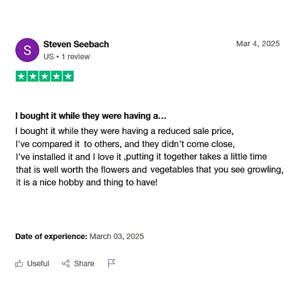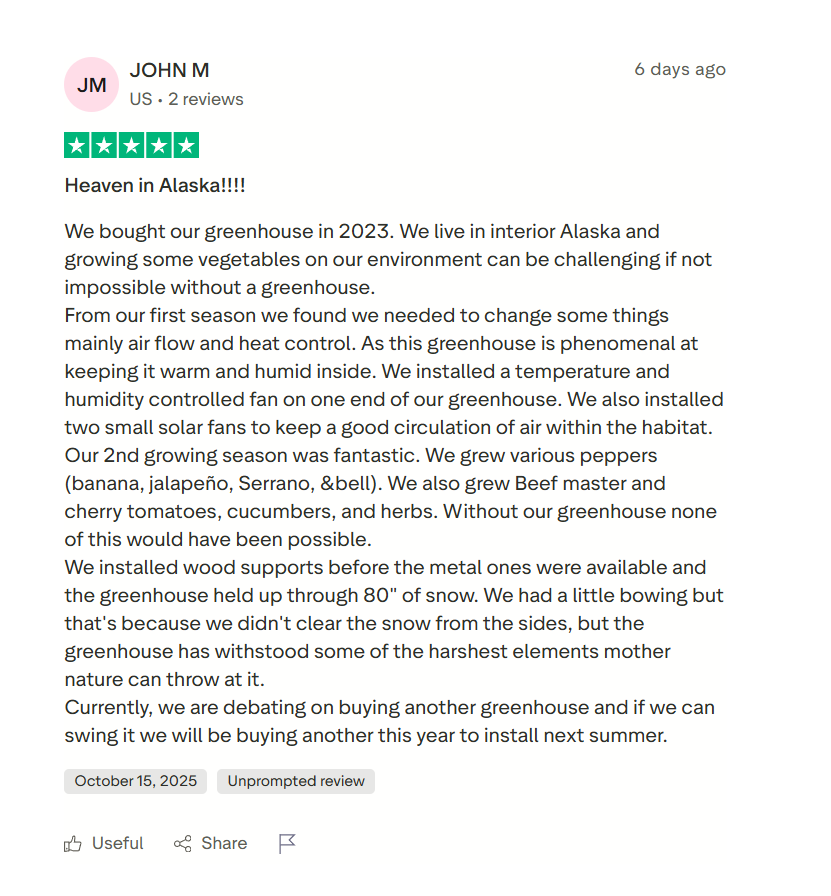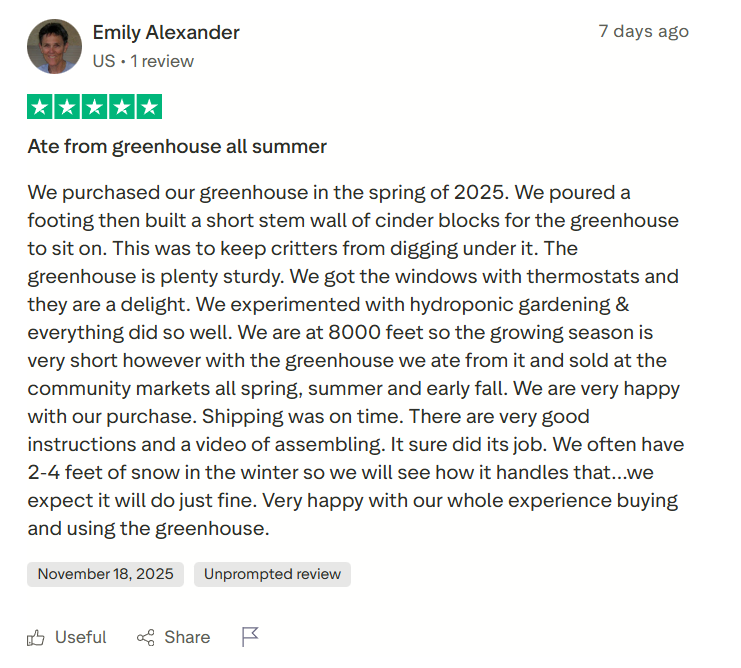 <div class="dynamic-checkout__content" id="dynamic-checkout-cart" data-shopify="dynamic-checkout-cart"> <shopify-accelerated-checkout-cart wallet-configs="[{"name":"shop_pay","wallet_params":{"shopId":58207436890,"merchantName":"YourGreenhouses Inc","personalized":true}},{"name":"amazon_pay","wallet_params":{"checkoutLanguage":"en_US","ledgerCurrency":"USD","placement":"Cart","sandbox":false,"merchantId":"A1B2K3GT04WOFT","productType":"PayAndShip","design":"C0002"}},{"name":"paypal","wallet_params":{"shopId":58207436890,"countryCode":"US","merchantName":"YourGreenhouses Inc","phoneRequired":true,"companyRequired":false,"shippingType":"shipping","shopifyPaymentsEnabled":true,"hasManagedSellingPlanState":false,"requiresBillingAgreement":true,"merchantId":"MTVALEBEF2MNL","sdkUrl":"https://www.paypal.com/sdk/js?components=buttons\u0026commit=false\u0026currency=USD\u0026locale=en_US\u0026client-id=AbasDhzlU0HbpiStJiN1KRJ_cNJJ7xYBip7JJoMO0GQpLi8ePNgdbLXkC7_KMeyTg8tnAKW4WKrh9qmf\u0026merchant-id=MTVALEBEF2MNL\u0026intent=tokenize\u0026vault=true"}}]" access-token="b7d93dd43db47510b1c04e8b791c89e8" buyer-country="US" buyer-locale="en" buyer-currency="USD" shop-id="58207436890" cart-id="f5239552e14bd0c1321b0107da685d03" enabled-flags="["ae0f5bf6"]" > <div class="wallet-button-wrapper"> <ul class='wallet-cart-grid wallet-cart-grid--skeleton' role="list" data-shopify-buttoncontainer="true"> <li data-testid='grid-cell' class='wallet-cart-button-container'><div class='wallet-cart-button wallet-cart-button__skeleton' role='button' disabled aria-hidden='true'> </div></li><li data-testid='grid-cell' class='wallet-cart-button-container'><div class='wallet-cart-button wallet-cart-button__skeleton' role='button' disabled aria-hidden='true'> </div></li><li data-testid='grid-cell' class='wallet-cart-button-container'><div class='wallet-cart-button wallet-cart-button__skeleton' role='button' disabled aria-hidden='true'> </div></li> </ul> </div> </shopify-accelerated-checkout-cart> <small id="shopify-buyer-consent" class="hidden" aria-hidden="true" data-consent-type="subscription"> One or more of the items in your cart is a recurring or deferred purchase. By continuing, I agree to the <span id="shopify-subscription-policy-button">cancellation policy</span> and authorize you to charge my payment method at the prices, frequency and dates listed on this page until my order is fulfilled or I cancel, if permitted. </small> </div>