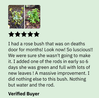 "My rose bush was on death's door. Six days after adding the antenna, it turned green and full with new leaves!"