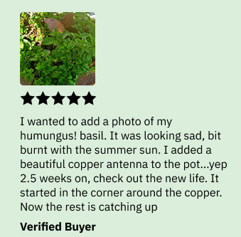 Pure copper channels that energy down into the soil where your plant roots live.