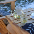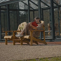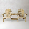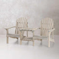 Amata Nordwood Adirondack Double Chair is shaped for how people actually sit outside — together. Reclined backrests, contoured seats, wide armrests, and a built-in side table between you for coffee, a book, or a phone. Crafted from Northern European pine with stainless steel fixings, it's built to stay solid for decades, not seasons.